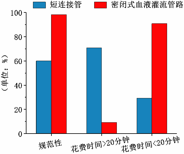 使用短連接管時,血液灌流結(jié)束后需拆除灌流器和短連接管,管路中的血液不可避免與空氣接觸,若操作時間過長可能導(dǎo)致透析器及管路凝血。使用密閉式管路可避免因管路暴露于空氣而引發(fā)的凝血事件。